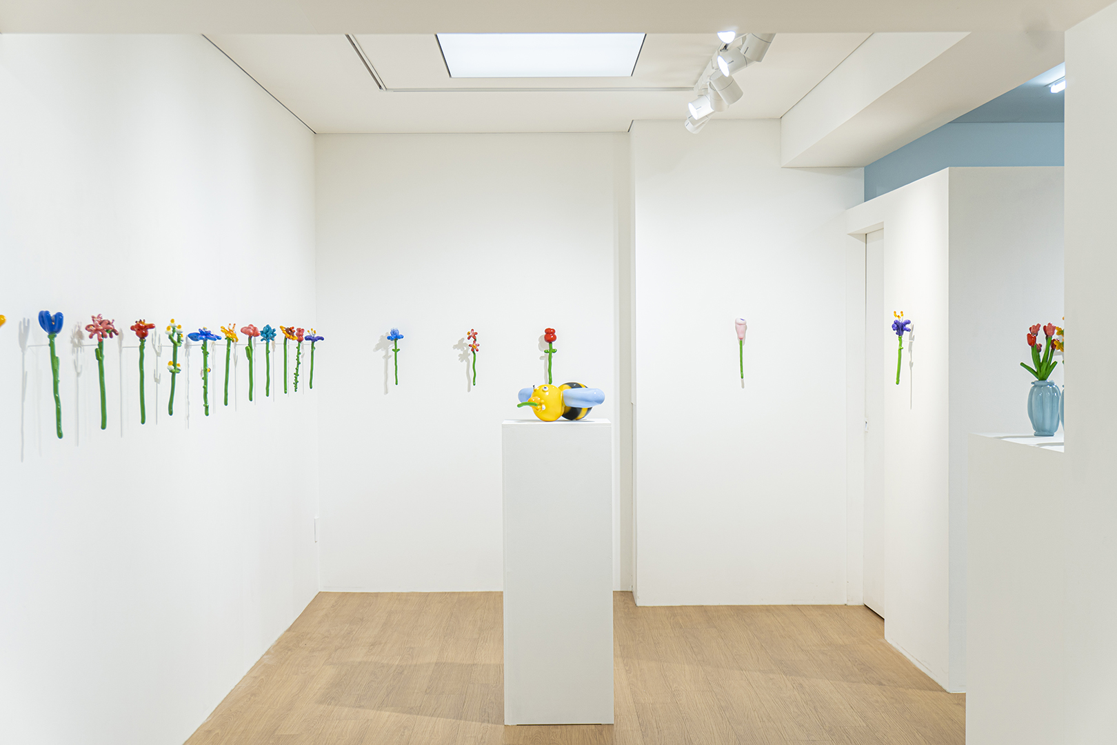 <?> as the third exhibition of 2023. This exhibition is significant in that it is not a 'character parody' type of work that has been exposed through various media, but an exhibition filled with works consisting only of the artist's original designs. The first theme of TODAM's original work is Flow-er. Known for his character-based, "pissed off" works, this will be the first time that the artist's very own "cute" eternal flowers will be on display. The first thing that stands out among the entries is a series of single flowers that showcase the artist's witty imagination and expressiveness. A total of 43 images of the single flower are displayed in rows, making a scissor-like impression. Three-dimensional and relief works reminiscent of bouquets or flower gardens are also important elements of the exhibition. In addition, about 55 new works, including a bee that has come to smell the flowers, will be exhibited in this exhibition. Above all, the exhibition will be filled with 'cute' works by TODAM, who is known for his 'pissed off' works.