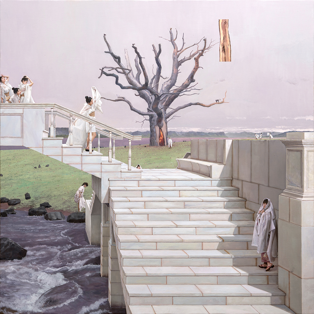 Jeongwoong Lee explores the boundary of the real and the fantastical, presenting a unique style of painting that is a fragmented mix of time and space and images. His work invites the viewer to go beyond traditional interpretations of painting and explore the work based on direct experience and personal imagination. Through fantasy, he seeks new narratives beyond the real, revealing a shift away from symbolism and toward de-symbolization in his creative process. This is also seen in the narrative approach of interactivity and imaginative amplification through the titles of the works. This approach invites the audience to experience artistic exploration on a deeper and more personal level.